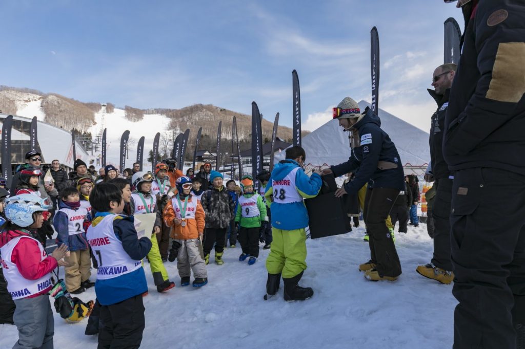 このイベントには、アルペンスノーボードの世界的レジェンドで金・銀のメダリストのシモン、フィリップ、ショッホ兄弟も来日し、北海道日本ハムファイターズの「ゆきのね奨楽金」の助成を受け日本ハムファイターズのSCO を務める稲葉さんもこのイベントに駆けつけました。