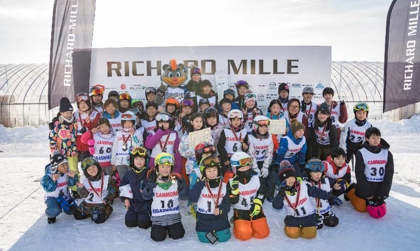 北海道上川郡東川町のキャンモアスキービレッジにて、リシャール・ミル ファミリー スノーボードアルペン選手の竹内智香さんプロデュースによる、北海道胆振東部地震被災児童支援チャリティ ~北海道から元気を未来へ~ スノーボードキッズわくわく杯in東川が開催されました。